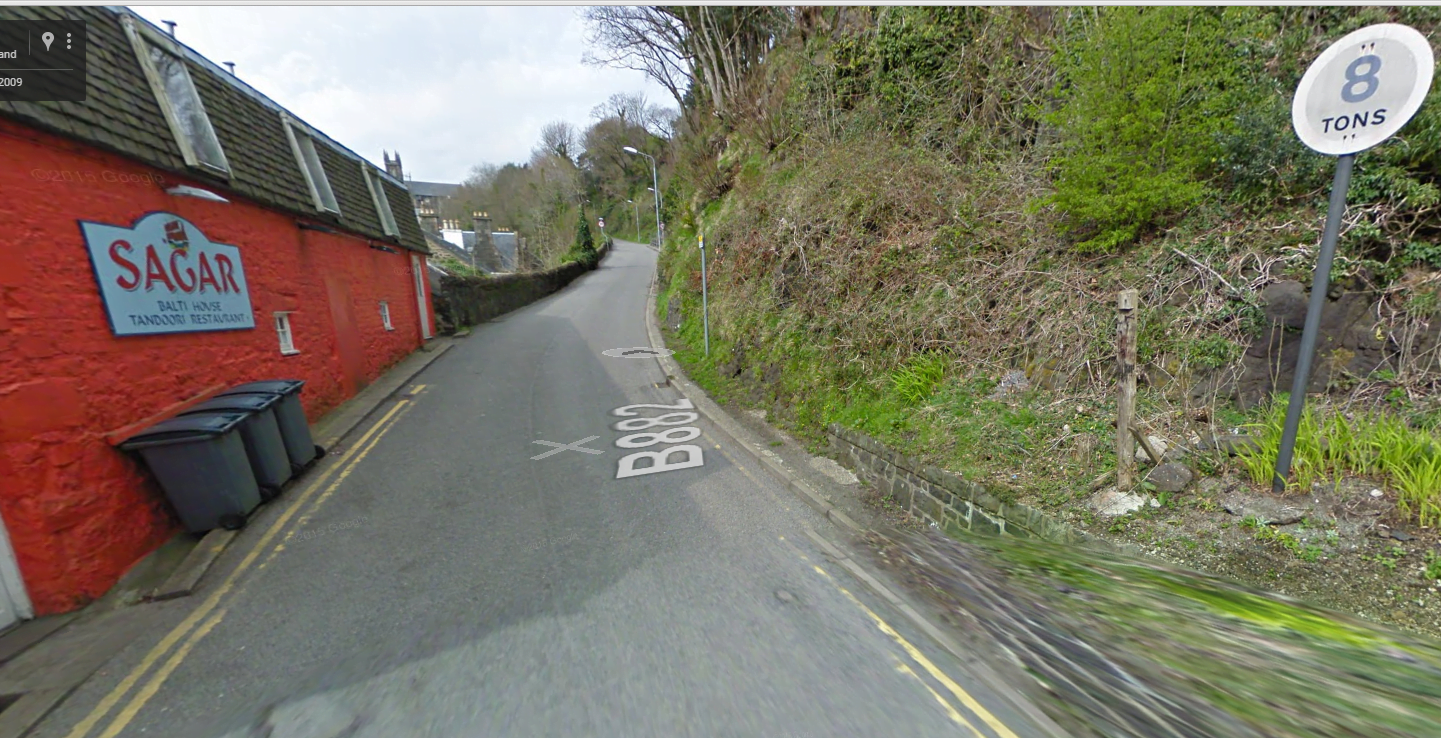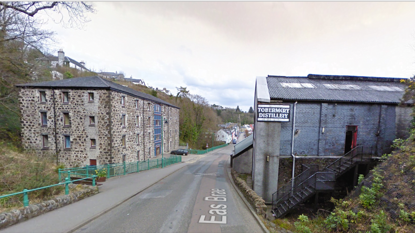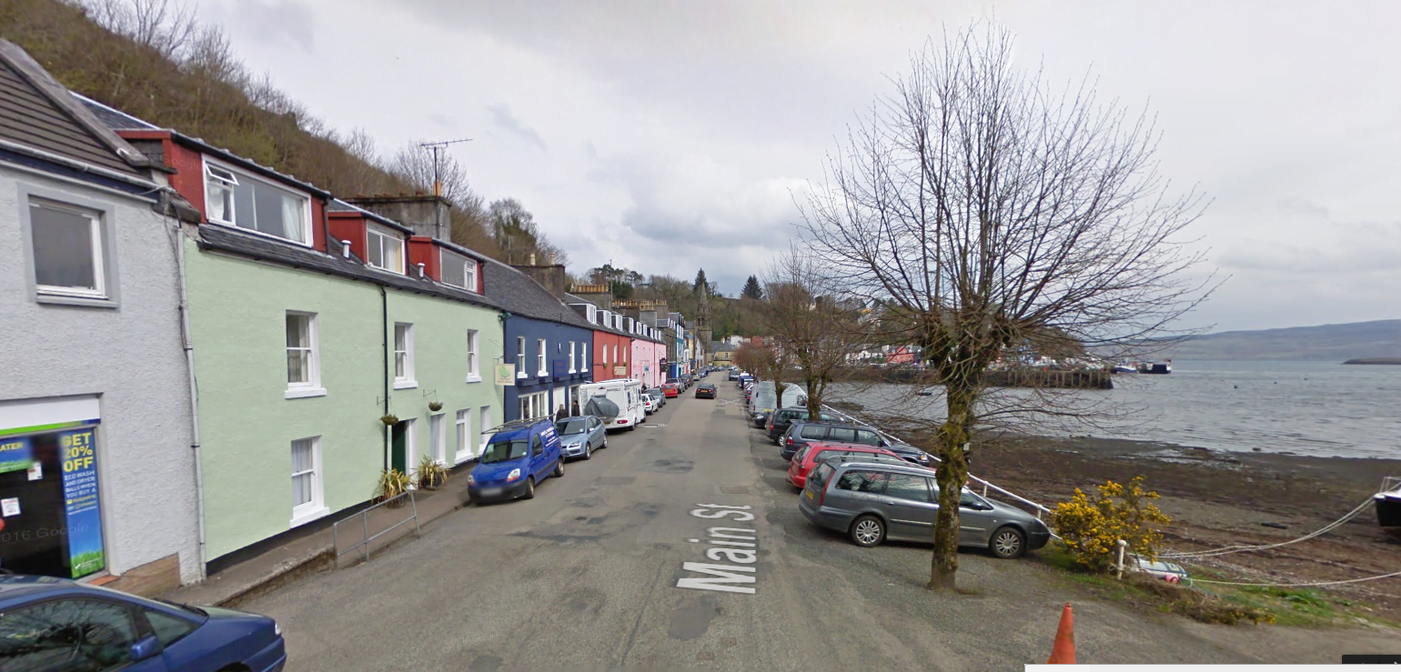 From Craignure, follow the signs to Tobermory (A849 which becomes A848 after Salen). Shortly after passing the “Welcome to Tobermory” sign, you will get to a roundabout. Follow the route in blue on the map below (copyright Google).